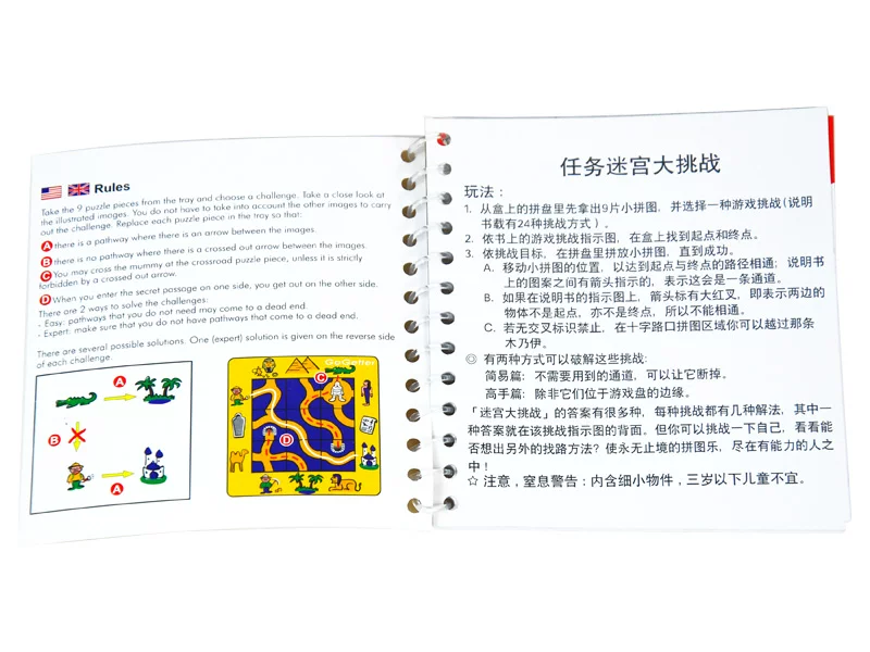 This set of toys designed for the Belgian child education experts, through a diversified portfolio subject to continuously improve brain functioning brain cells to stimulate children's development. Each book in the back of the title challenge will be to provide a set of answers for kids reference, but each question will have multiple solutions, focusing on the development of independent thinking children; often the game can enhance the diversity of diverse logical thinking, spatial arrangement of , right quick response. Logic puzzle game