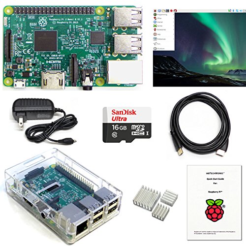 Raspberry Pi 3 Kit, Quad-Core CPU, 1GB, Raspbian OS Preinstalled, Transparent case