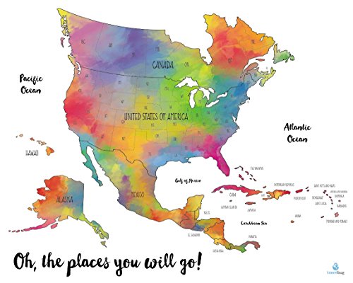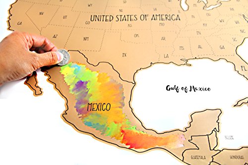 TRACK YOUR TRAVELS in and around the United States and plan your next destination to visit by scratching off the shiny gold foil on the map to reveal a beautiful, watercolor background underneath