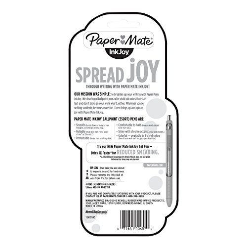 Paper Mate InkJoy 550RT Retractable Ballpoint Pens, Medium Point, Assorted, 4 Pack (1951274)