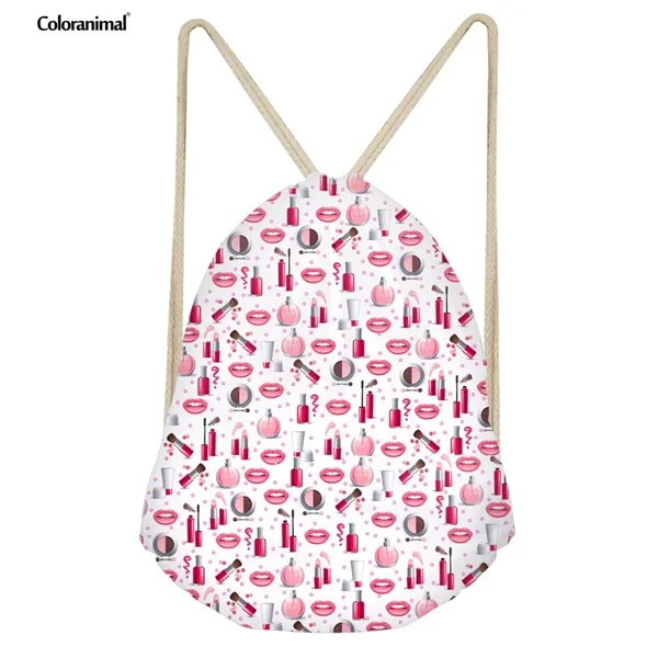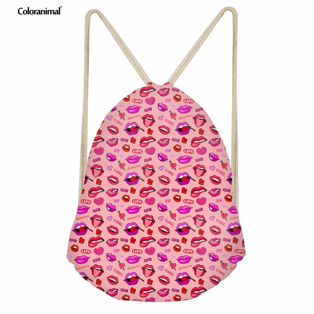 pattern:Lipstick print drawstring bag