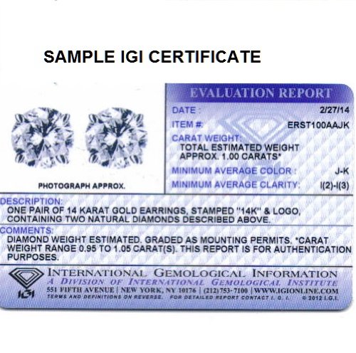 -. Binding : Jewelry -. Brand : Amanda Rose Collection -. Department : womens -. Feature : 1ct total weight means 1/2ct each / screw-backs for added security / IGI Certified J-K, I1-12 ( minimum grade). IGI Box, evaluation card and tags inclduded / 14K White Gold is Rhodium Finished / All of our diamond suppliers and MLG state that to the best or their/our knowledge that all of our diamonds are conflict free. -. Label : Amanda Rose Collection -. Manufacturer : Amanda Rose Collection -. Model : PDE101CRTZIJI2 -. MPN : PDE101CRTZIJI2 -. PackageQuantity : 1 -. PartNumber : PDE101CRTZIJI2 -. ProductGroup : Jewelry -. ProductTypeName : FINEEARRING -. Publisher : Amanda Rose Collection -. Studio : Amanda Rose Collection -. Title : IGI Certified 1ct TW Round Diamond Stud Earrings in 14K White Gold with Screw Backs
