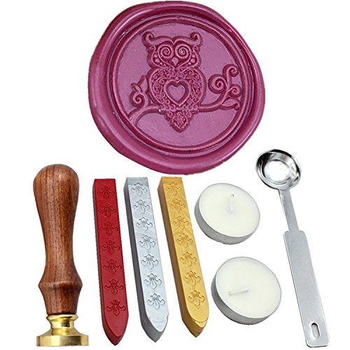 FQL Owl Vintage Rosewood Wax Seal Stamp Set With Gold Red Silver Sticks