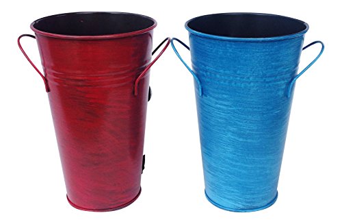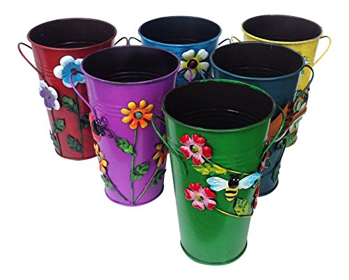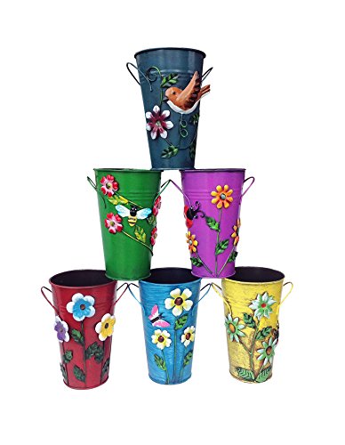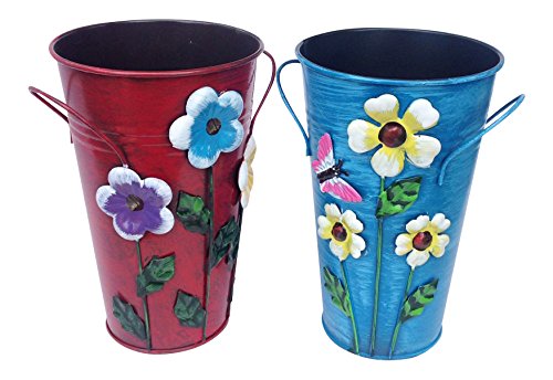 Studio : U.S.Sourcing Inc. Publisher : U.S.Sourcing Inc. Binding : Kitchen Product Description Set of 2 Hand painted metal bucket shaped vase or planter available in 3 different sets and six different combinations. Colorful country style miniature buckets that can be used for a vase or planter. Each comes with raised accents that include flowers, butterflies, 0