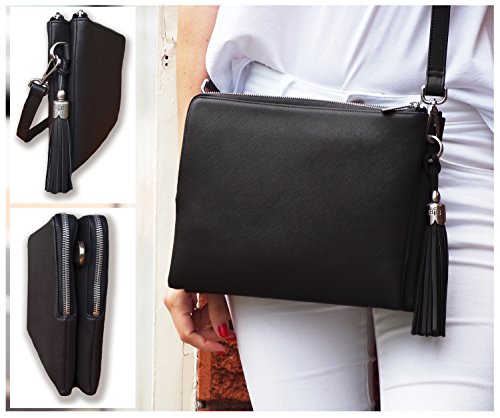 DESIGNER CROSSBODY BAG AND WALLET COMBINED - the Lucy Bag is only bag you need to carry - one side padded iPad tablet sleeve - the other side purse, wallet and cell phone case combined - it's a great satchel bag or a messenger Bag that will hold a small computer or electronic device less than 10 inches - FASHIONABLE AS WELL AS FUNCTIONAL
