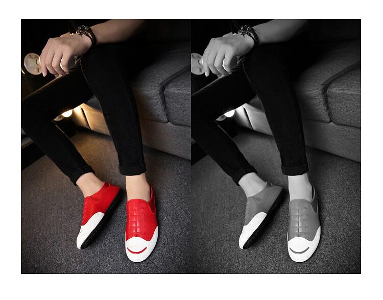 豆豆鞋男秋冬韩版一脚蹬懒人休闲鞋笑脸帆布鞋青少年百搭潮鞋男鞋