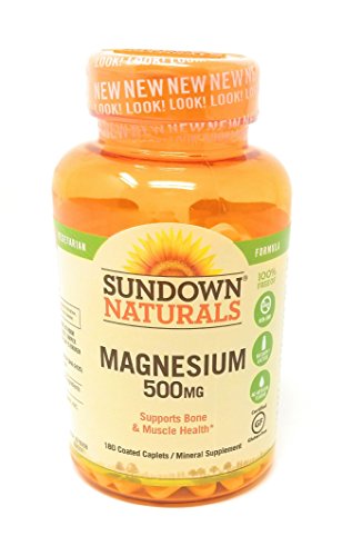 Sundown Naturals Magnesium 500 mg provides you with a convenient one-per-day dose of this important mineral. Magnesium is essential for bone structure and supports bone health.* It also promotes muscle health, and is involved in nerve impulses.* These caplets are coated for easy swallowing, and are a great fit for vegetarian lifestyles.Feature