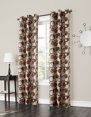 Sun zero celestial grommet room darkening curtain panel adds style and fun with a multi color modern interlink circle design. Room-Darkening Panels are made of materials that reduce light, and considerably darken the room to enhance your privacy. Some light will show through.Feature