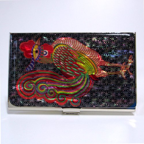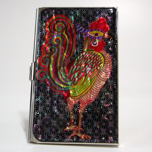 Mother of Pearl RFID Blocking Protection Red Rooster Desgin Business Credit Name ID Card Holder Case Metal Engraved Slim Cash Money Wallet