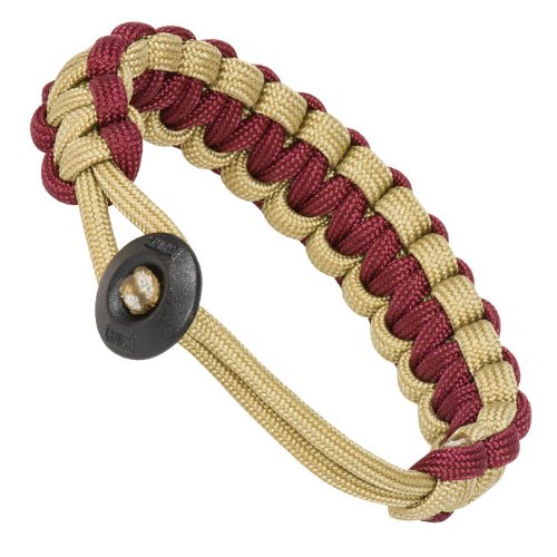 The Klondike paracord bracelet features a custom button closure which can be adjusted to fit any medium- to small-sized wrists.
