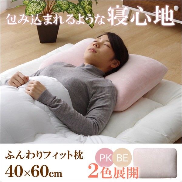 【商品名】枕 ピロー 洗える 低反発 やわらかい 『ふんわりフィット枕』ベージュ 約40×60cm