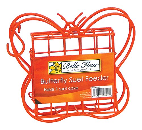 Belle Fleur Butterfly Suet Bird Feeder, Red, One Suet Cake Capacity