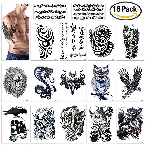 SAFE FOR ALL SKIN FULL ARM SLEEVE TATTOO DUNDLE - contains 18 sheets temporary tattoo which are printed with non-toxic ink, Your friends will think you took a new tattoo! Great fun for parties, special events Also for testing how would a real tattoo look like