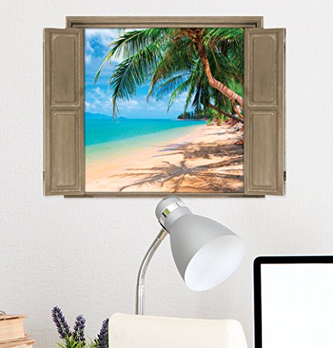 Walls 360 Peel & Stick Wall Decals Window Views Beach (12 in x 9 in)