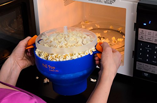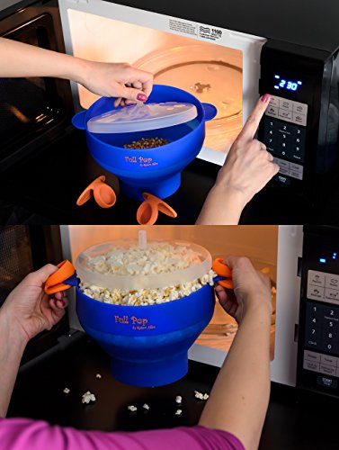 WHAT YOU RECEIVE: Blue silicone microwave popcorn bowl with lid, one set of orange hot handles to help with removing the bowl from your microwave. Our reliable and friendly customer service team is always ready to help with any questions and give you recipe ideas for an amazing experience. Ditch that bulky electric popcorn popper and enjoy the functionality of your new healthy popcorn bowl. Have fun with your family and friends in the comfort of your home by enjoying delicious popped kernels