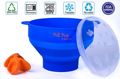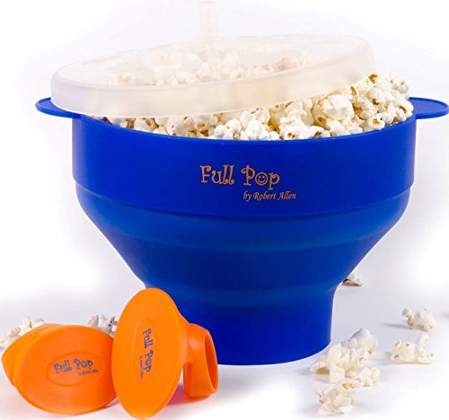 Full Pop Silicone Popcorn Popper Collapsible Popcorn Bowl with Lid-BONUS Free silicone hot handles