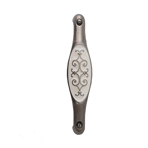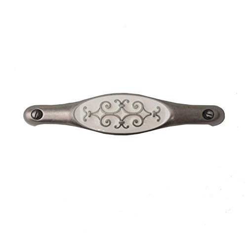 Bosetti Marella Decorative Handle Pull, White Enamel 5.51-Inch by 1.18-Inch, Old Iron