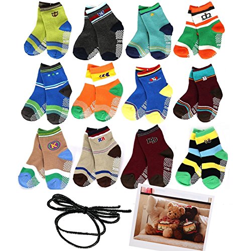 -. Feature : Material: 95% Cotton,3% Polyester,2% spandex. / 6 Pairs 1-2 Years Baby Boy's Toddler Anti Skid Slip Slipper Stretch Knit Socks + Gift Card + Hair Rope, Footsocks sneakers Socks, Length :10-12cm/3.9-4.68inch / Cute dot P.R.Int socks with anti skid/Slip sole, Anti-slip socks is the protector of your child; Breathable, Absorbent, Deodorant, Anti-skid and Comfortable / Non skid slipper toddler socks Size: To fit babies Age 1-2, Length :10-12cm/3.9-4.68inch; Have good elastic - very practical for the rapid growth in babies / Package Includes:6 pairs toddler socks + Gift Card + Hair rope