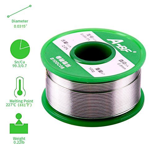 A-BF Lead Free Rosin Core Solder Wire Sn99.3 Cu0.7 for Welding Electrical Soldering DIY Repair Working 0.0315 Inches(0.8mm) 0.22lbs(100g)