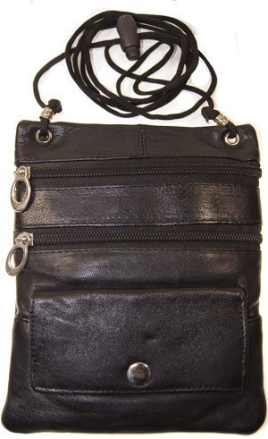 Improving Lifestyles Leather Crossbody Travel Bag Small Black FREE Organza Gift Bag SUN015BK
