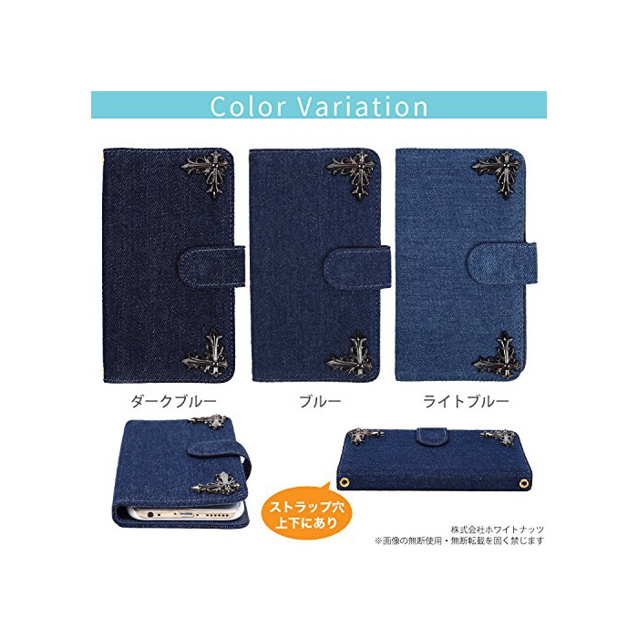 원본상품명: whitenuts ケス 手帳型 十字 デコ デニム