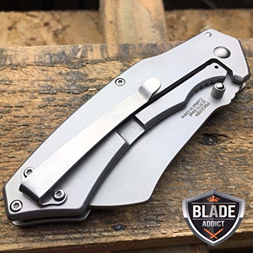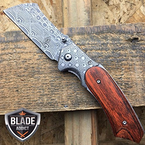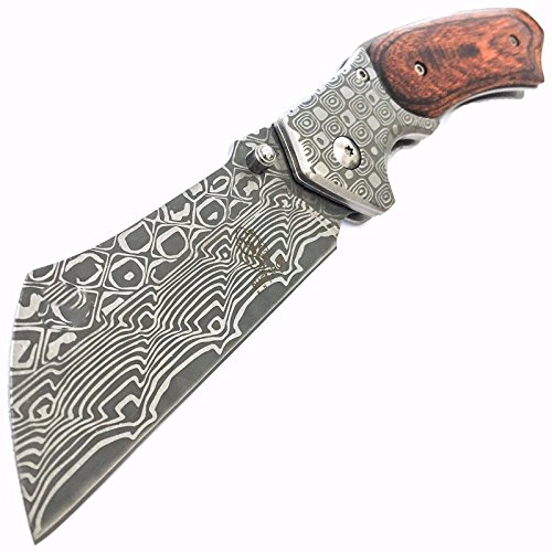 8" Damascus Etch Cleaver Razor Blade Spring Assisted Pocket Knife - PBK205DS