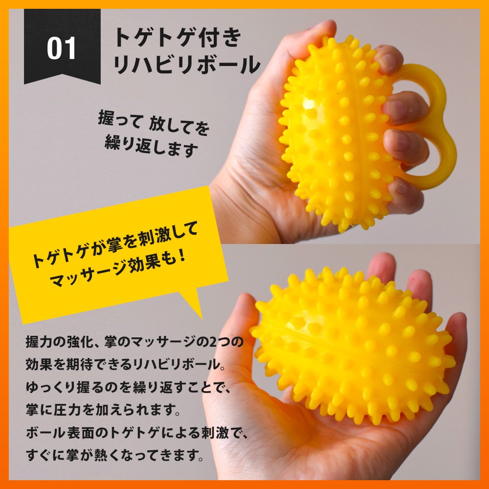 Rehabilitation ball which can expect two of strengthening grip strength and palm massage.