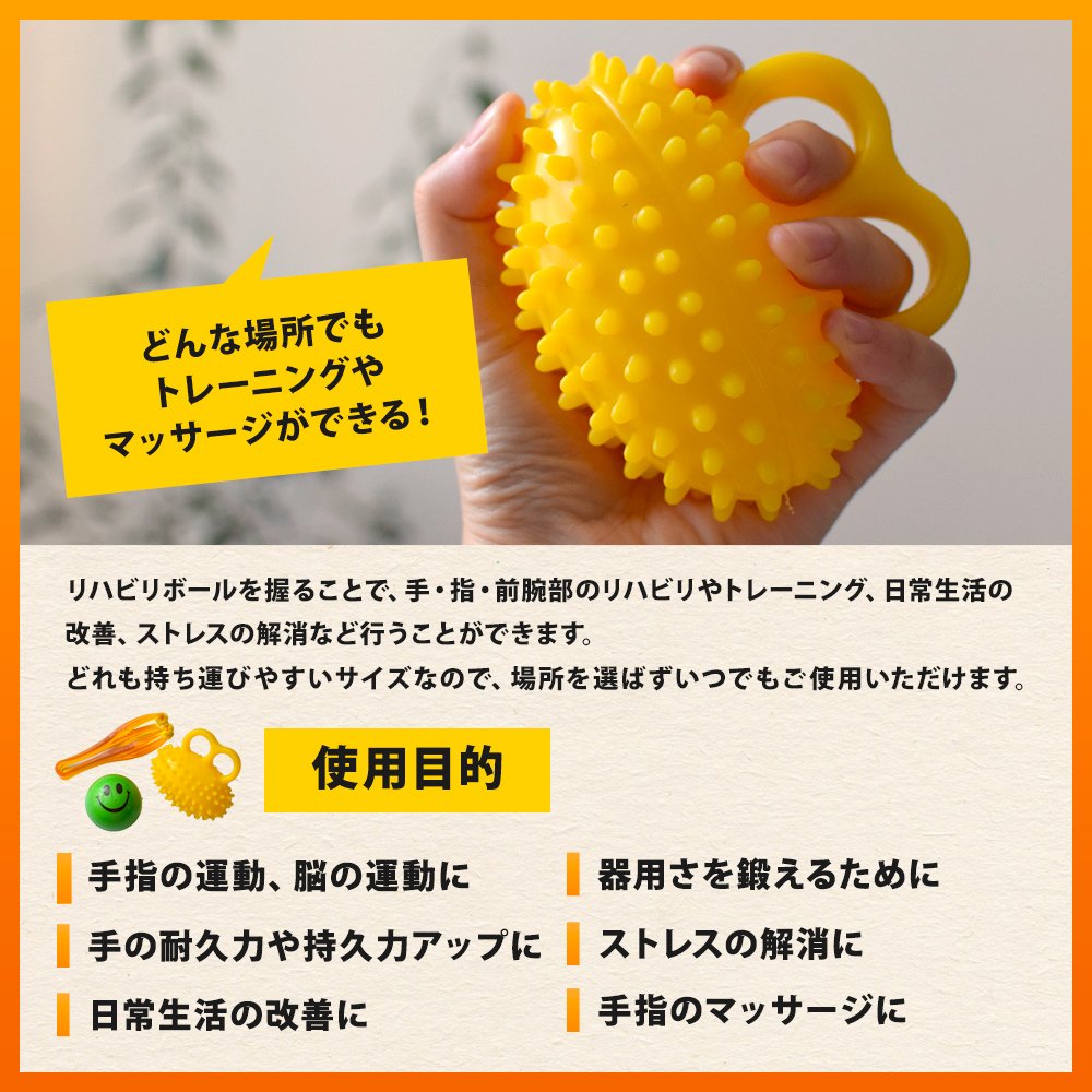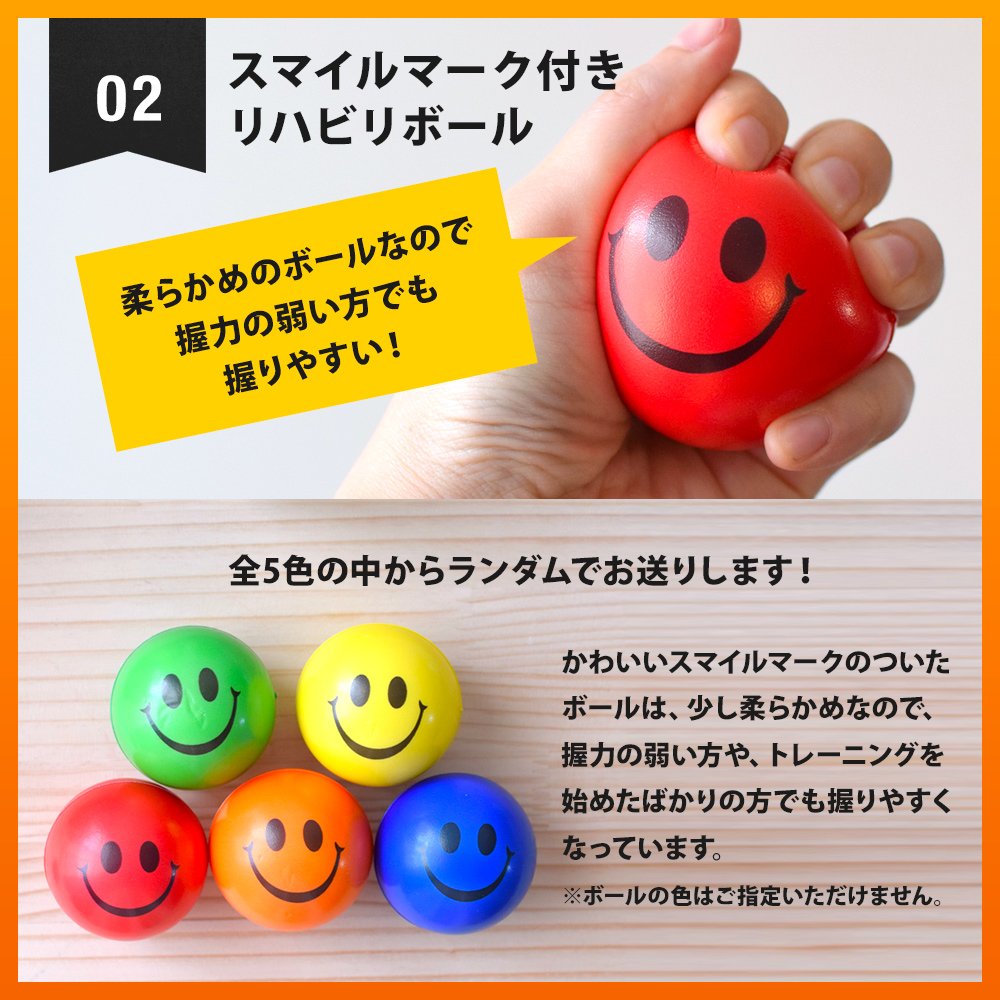 The rehabilitation ball with a smile mark is slightly soft, so it is easier to grasp even those who are weak in grip strength or just started training.