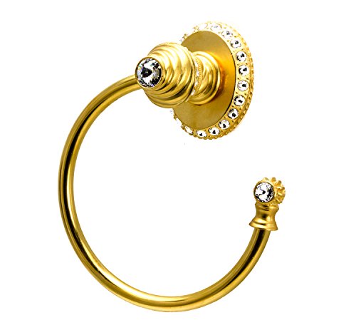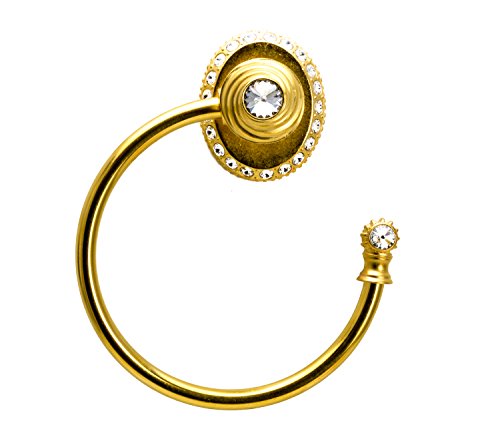 Carpe Diem Hardware 1848-8C Cache II Large Towel Ring Right with Side Crystals Large Escutcheon Made with Swarovski Elements, Gilded Mercury