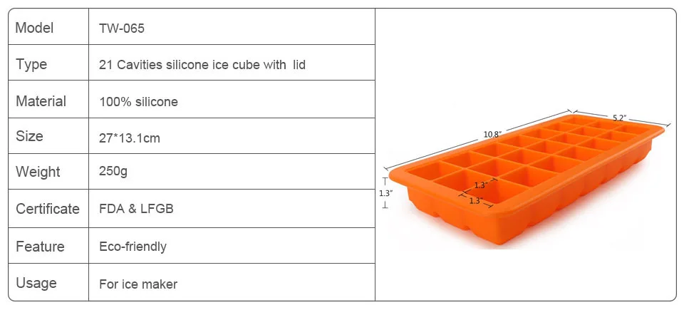 Name:21 Cavities Silicone Ice Cube With Lid