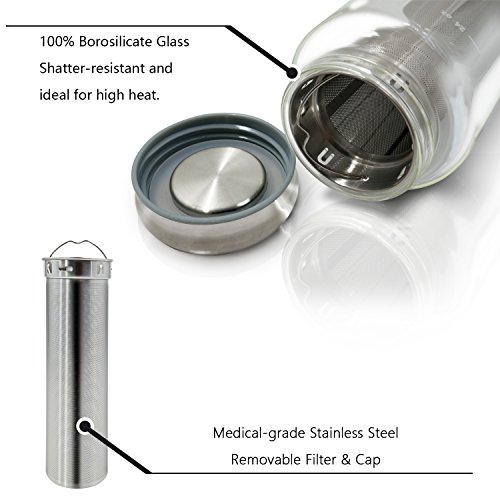 RELIABLE QUALITY: Medical-grade stainless steel filter & cap. Extra-thick, lab-tested borosilicate glass. BPA-Free silicon airtight seal. For any defects in the materials or craftsmanship of any Choiu product, please contact our customer service team and we will be glad to assist you.