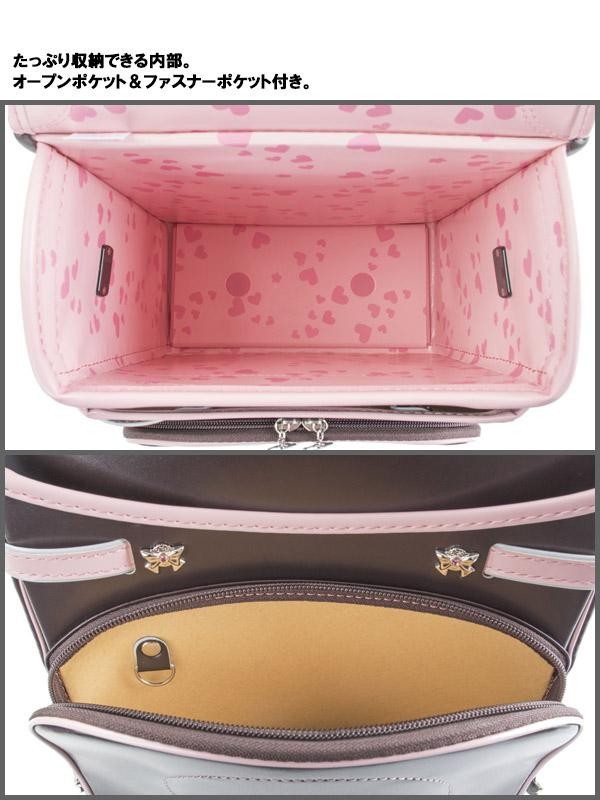 ハートやリボンをモチーフにデザインされた、かわいい女の子用のランドセルです。