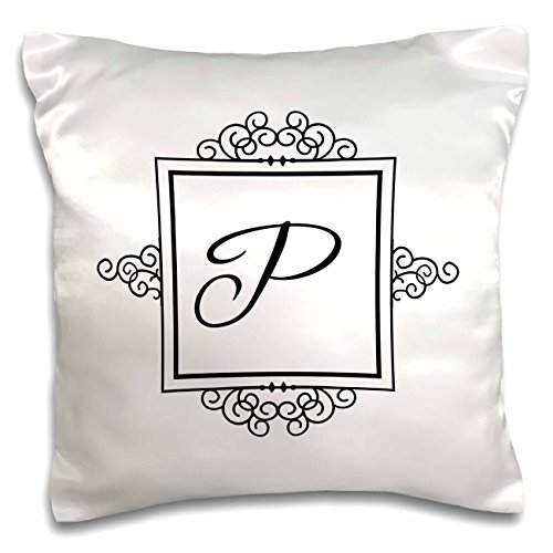 3dRose Initial Letter P Personal Monogrammed Fancy black and White Typography Elegant Stylish Personalized-Pillow Case, 16 by 16" (pc_154339_1)