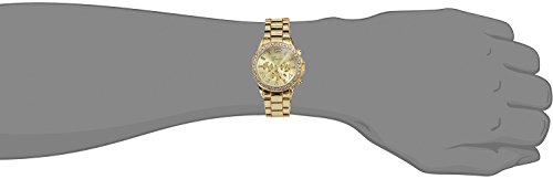 -. Feature : Sunray dial with crystal zircon analog indices and three decorate subdials / Quartz movement with analog display / Three-link alloy bracelet with gold-tone center links and fold-over clasp / Not water resistant / Round watch featuring gold-tone case with crystal-inset bezel