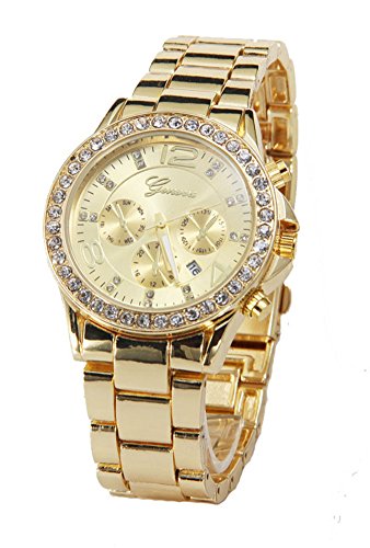 -. Title : Jechin Luxury Gold Watches Crystal Diamond Dial Quartz Wrist Watch Gold-Tone Charm Bracelet
