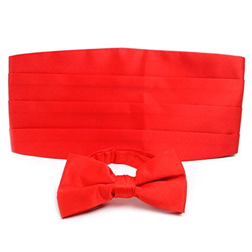 Product DescriptionTraditional matching tuxedo bow tie and cummerbund. Bow tie is adjustable up to 15" neck. Cummerbund is adjustable up to 48" waist.0