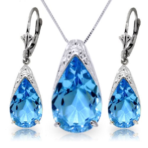 -. Title : 14k White Gold Blue Topaz Drop Necklace and Earrings Set
