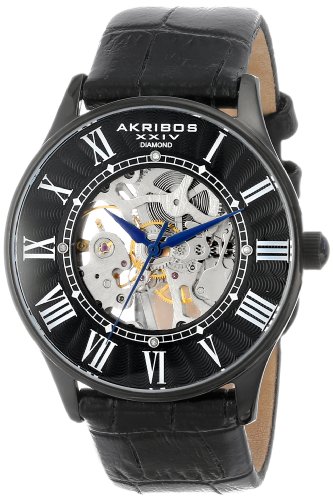 -. Title : Akribos XXIV Men's AK499BK Bravura Slim Mechanical Leather Strap Watch