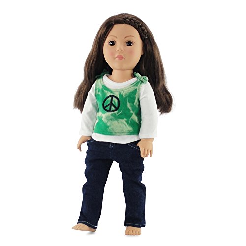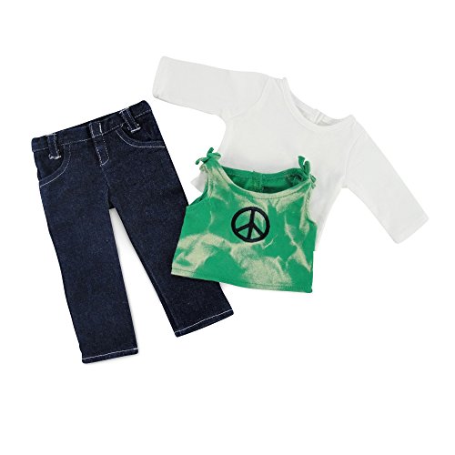 - Green tank top with a hint of tie-dye has a black peace symbol. Includes very trendy skinny jeans