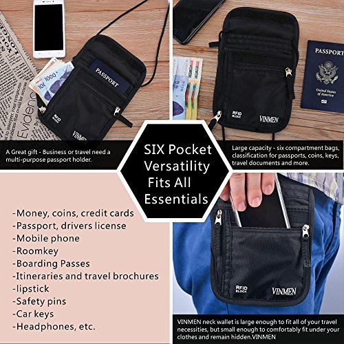 VINMEN neck wallet is large enough to fit all of your travel necessities, but small enough to comfortably fit under your clothes and remain hidden.