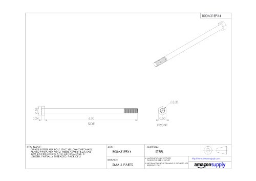 Steel Hex Bolt, Grade 8, Zinc Yellow-Chromate Plated Finish, Hex Head, External Hex Drive, Meets ASME B18.2.1/SAE J429, 7/8" Length, Fully Threaded, 5/16"-18 Threads (Pack of 50)
