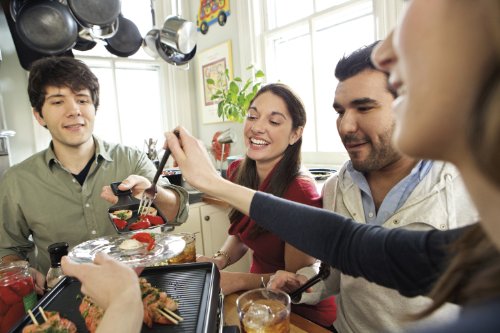 Feature : 8-person raclette party grill for a unique dining experience / Prepare small pieces of meat, seafood, vegetables, and more / Adjustable temperature; nonstick grill with 8-tray heating section / Recipes and 8 heat-resistant cooking paddles included; dishwasher-safe parts / Measures approximately 16-1/2 by 7-1/8 by 15-1/2 inches; 1-year warranty
