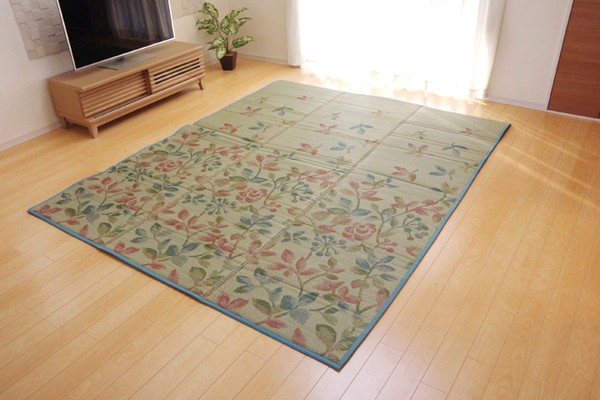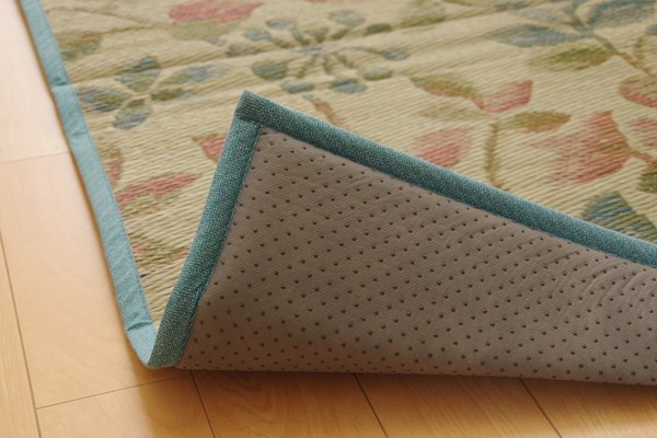 リーフをデザインしたシンプルでカジュアルない草ラグです。クッション性にこだわり、中材にはウレタンフォームを12mm使用しました。底付き感なく、ふっくらとした踏み心地の商品です。裏面には滑りにくい加工も施しており、フローリングのお部屋には最適です。い草には空気の自然浄化作用、湿度の調節作用などがあります。また汚れにくく、使用するうちに黄金色に変化し、味が出ます。