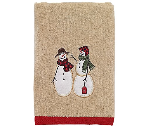 Product Description Web exclusive! Treat your guests to fun wintery style with this sweet hand towel from Avanti. Snowmen Gathering features a duo of happy snowmen embroidered on a 100-percent cotton tan towel. Finished with a coordinating red woven border, this towel adds a festive touch to your master and guest baths. 0