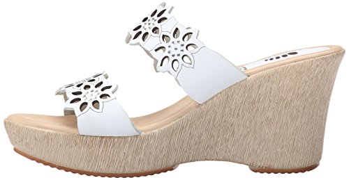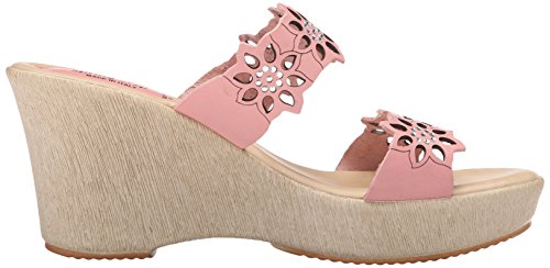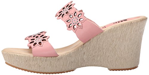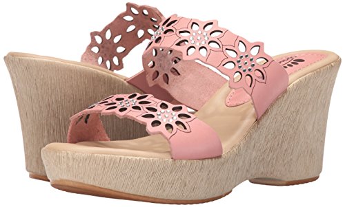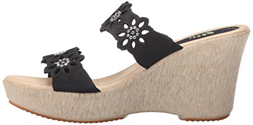 Product DescriptionWedge sandal with bedazzled dual bands featuring floral laser cutouts and etching0