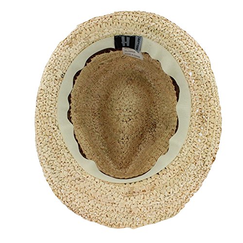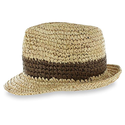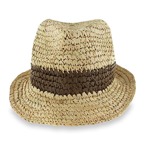 -. Feature : Classic Fedora Style / Raffia Straw / 2-toned Body / 2" Relaxed Brim / 4 1/2" Crown / Unlined / Grosgrain Sweatband