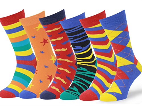 Easton Marlowe Mens - 6 PACK - Colorful Patterned Dress socks - 6pk #1, mixed - bright colors, 43-46 EU shoe size
