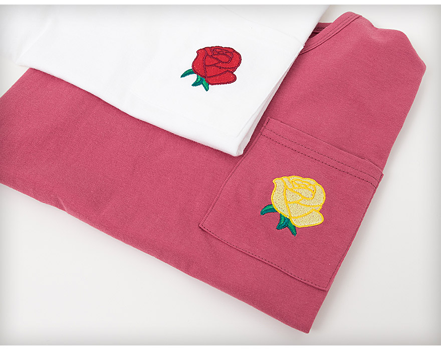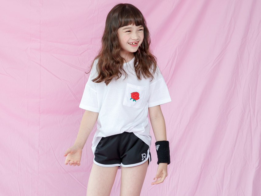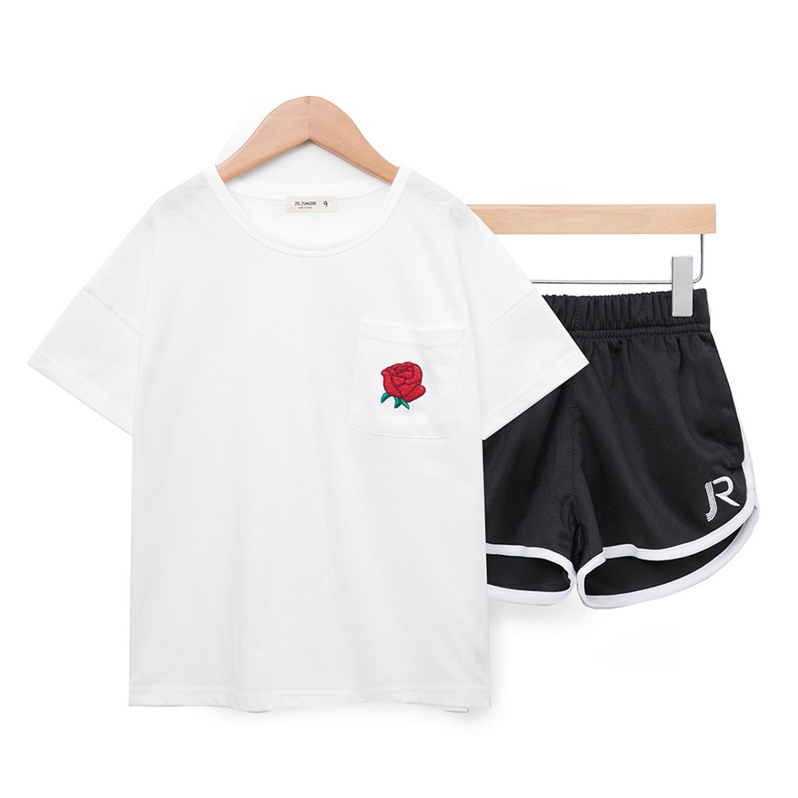 상의 앞판에는 포켓과 자수로로 더욱 돋보이는 티셔츠이며,