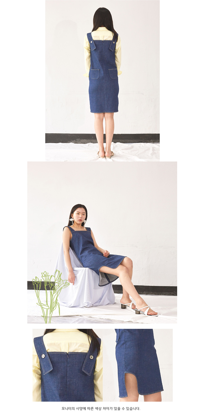데님 멜빵 원피스로 디자인된 아이템입니다.