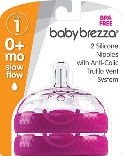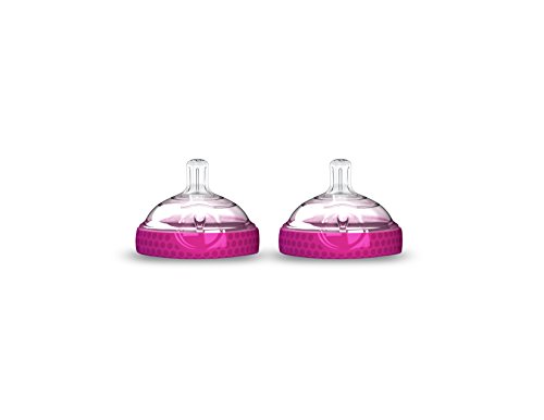 Baby Brezza Baby Bottle Replacement Parts - 2 Pack of BPA Free Replacement Tops - Slow Flow Nipple - Pink